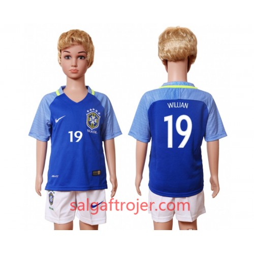 Brasilien Fodboldtrøjer Willian 19 Børn Udebanesæt 2016 Kort ærmer