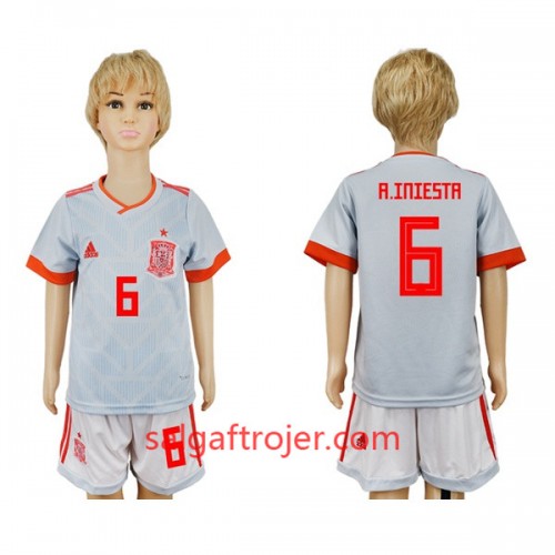 Spanien Fodboldtrøjer A_Iniesta 6 Børn Udebanesæt VM 2018