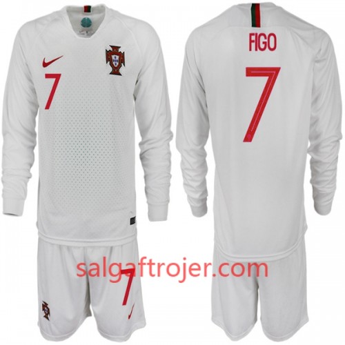 Portugal Fodboldtrøjer FIGO 7 Børn Udebanesæt VM 2018 Langærmet